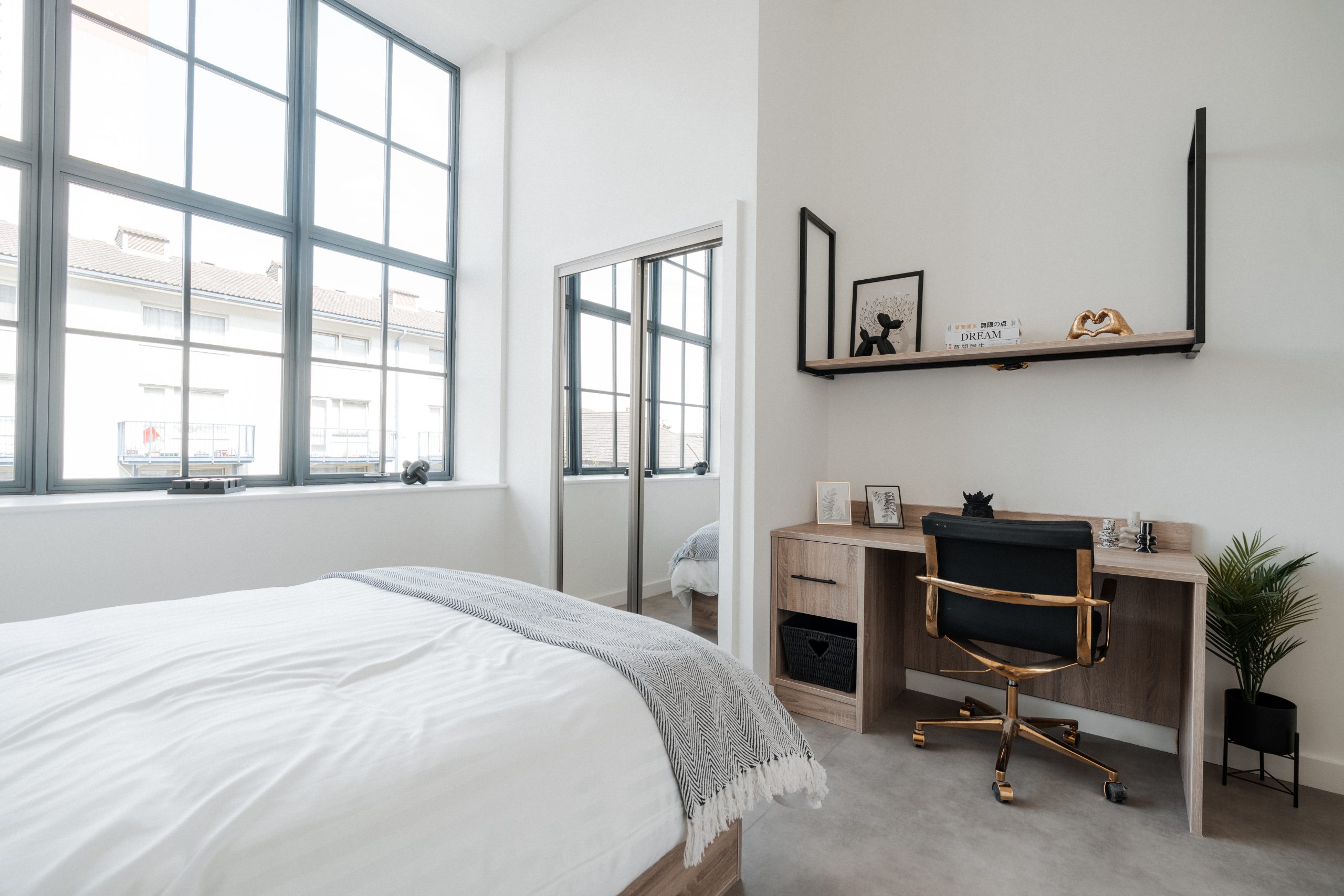 A smart, flexible option. Shared rooms designed with space in mind, with your own bed, desk, and storage, ideal for living comfortably while keeping costs down.